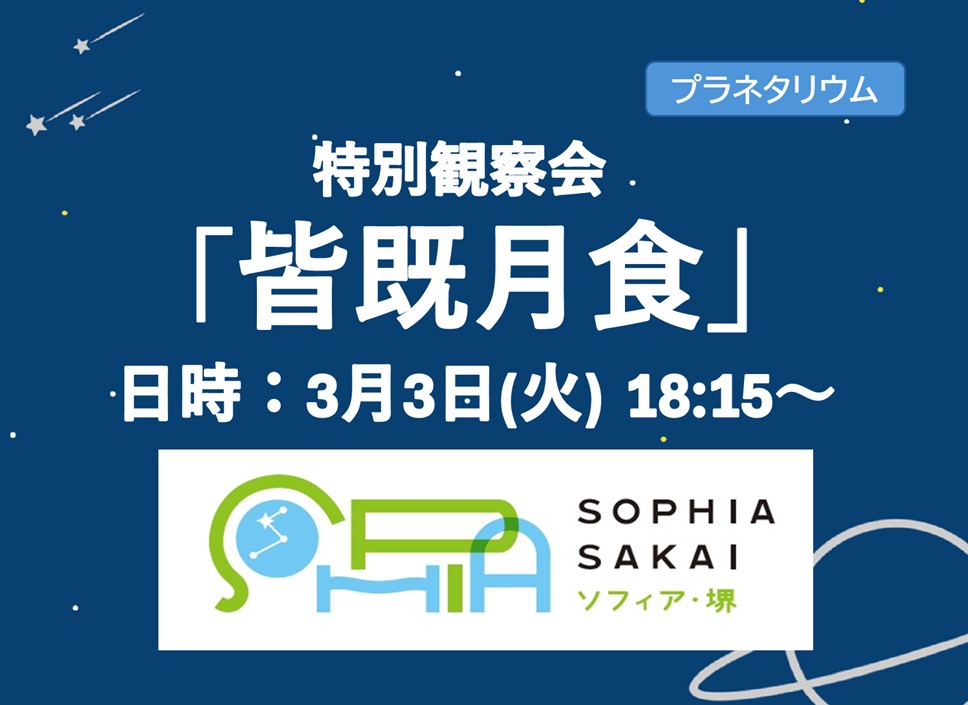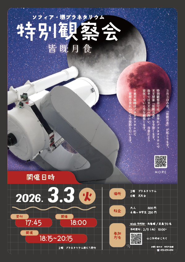 ※悪天候時はプラネタリウムにて皆既月食についての投影を行います。