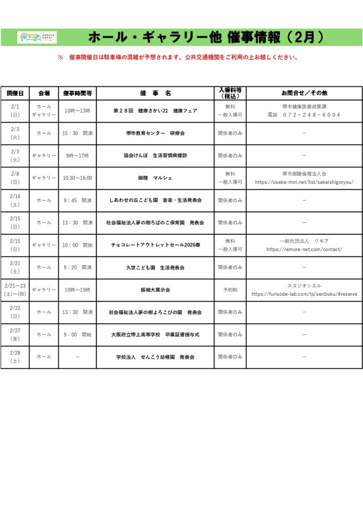 お知らせ ホール・ギャラリー他 催事情報(2月) 2026.01.30 宇宙への小さな旅~望遠鏡で天体をみよう!~ 前の記事 ソフィア市~てづくり&フード~出店者募集情報 第2弾 次の記事 新着のお知らせ 2026年度ソフィアカルチャー新講座 「気軽に楽しむ陶芸教室」 2026.02.17 ソフィア市~てづくり&フード~ 出店者応募フォーム 2026.02.13 3月のプラネタリウム団体予約の締め切りは2月20日(金)17時です 2026.02.13
