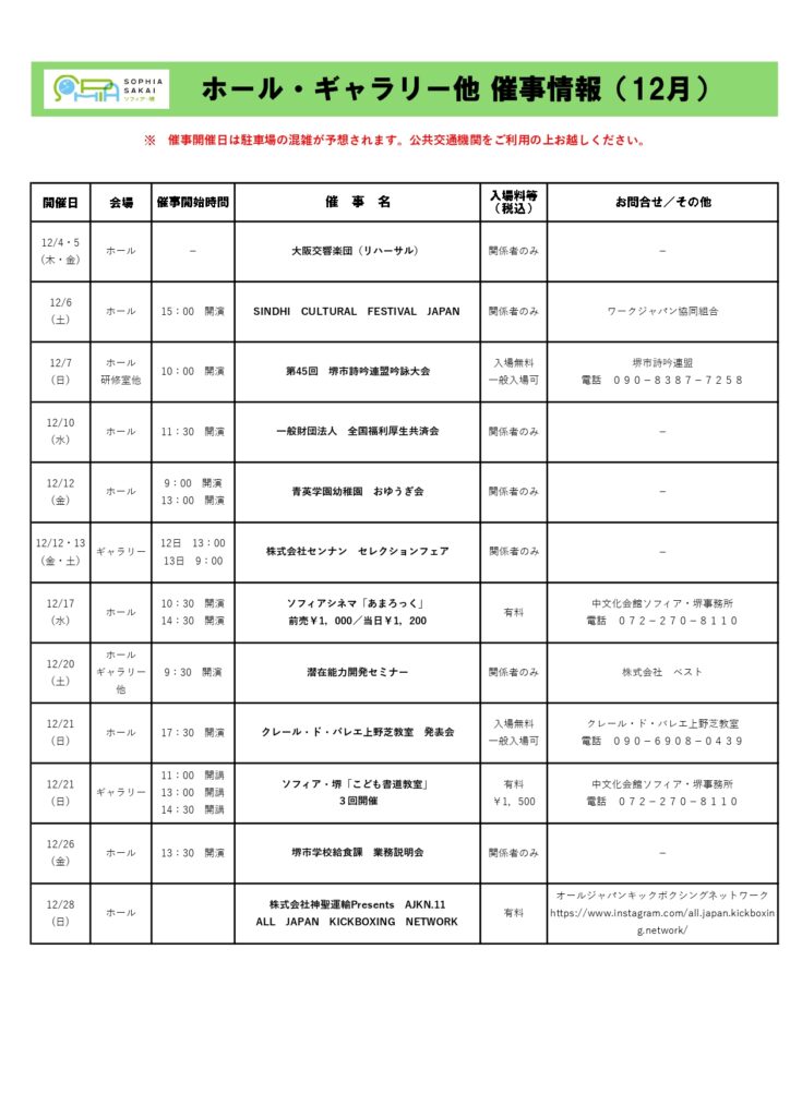 ホール・ギャラリー他 催事情報(12月) 2025.11.25 12月のプラネタリウムの投影スケジュールと団体予約状況について 前の記事 ソフィア・堺 こども書道教室 次の記事 新着のお知らせ ソフィア・堺 こども書道教室 2025.11.26 12月のプラネタリウムの投影スケジュールと団体予約状況について 2025.11.22 【予約受付開始】プラネタリウムコンサート 2025.11.19