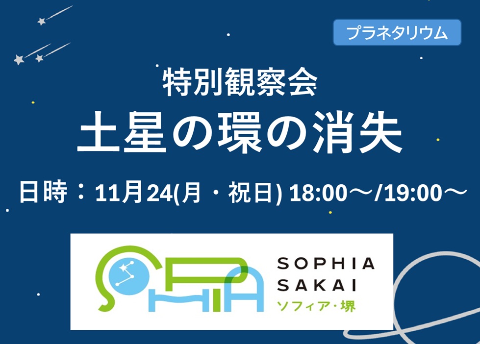 ※悪天候時はプラネタリウム番組「消える土星の環」を投影します