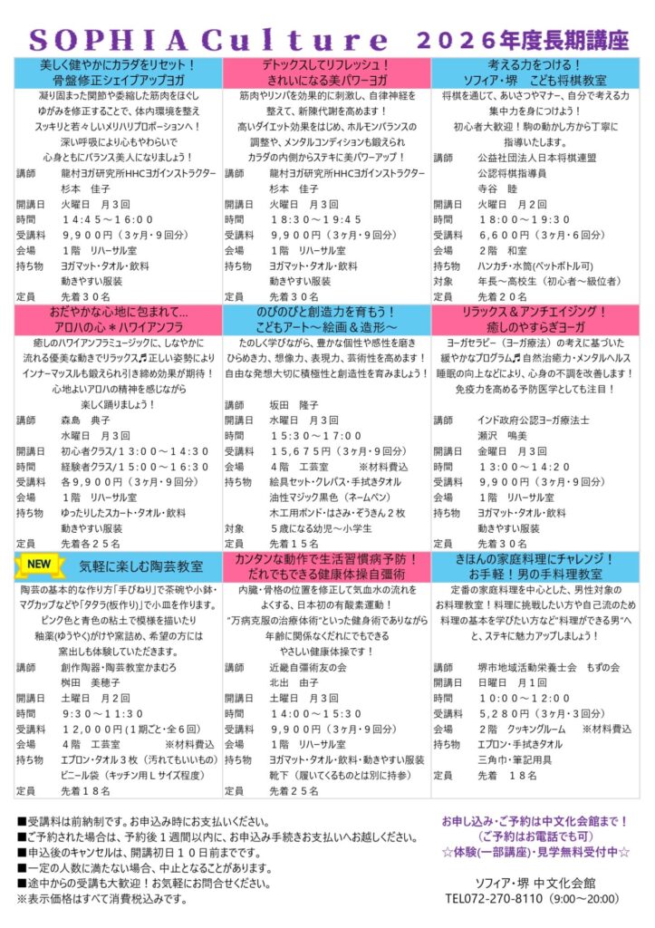 中文化会館ソフィア・堺事務室  電話 072-270-8110(9時~20時/月曜休館日)